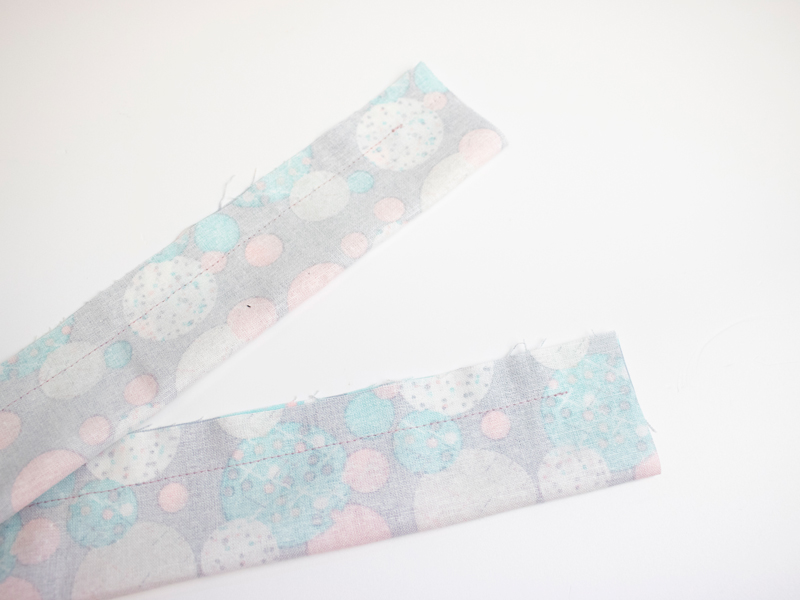 Fold the fabric in half along the longest edge right sides together. Leaving 5cm at either end sew along the long edge using a 1.5cm seam allowance, backstitching at either end.