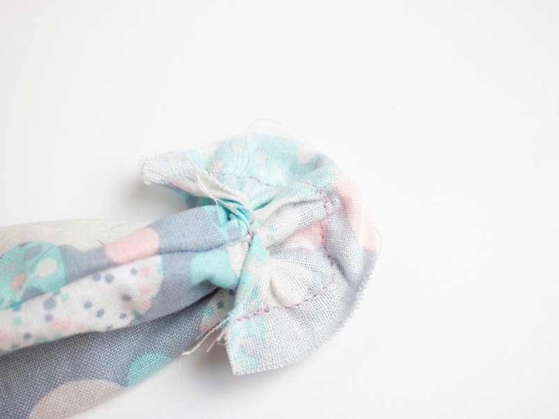Pull outwards so that the raw edge turns inside and the seam edges tuck themselves in.