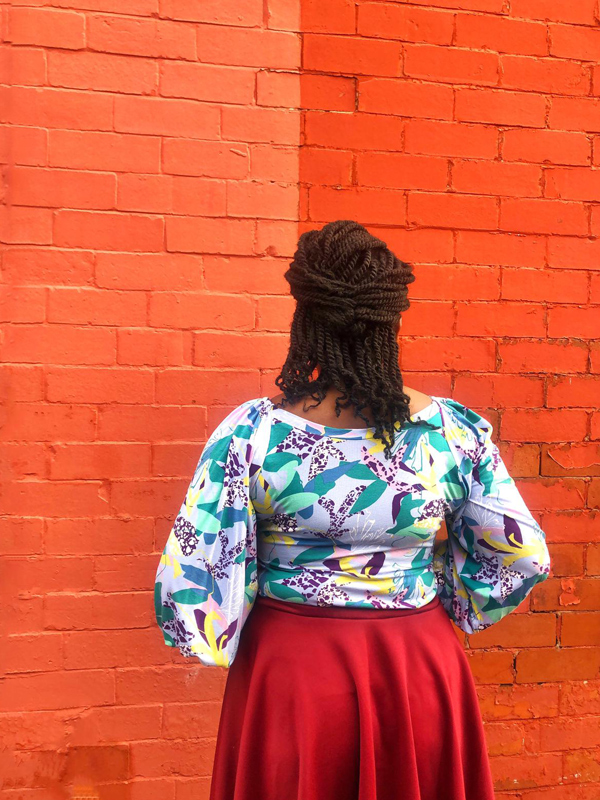 I decided to feel the fear and do it anyway, by making a knit top that was high on my wishlist which is the Adrienne blouse from the Friday Pattern Company. It is a wonderful fitted top with statement sleeves. A nice shape with sleeves that take a simple top to another level.