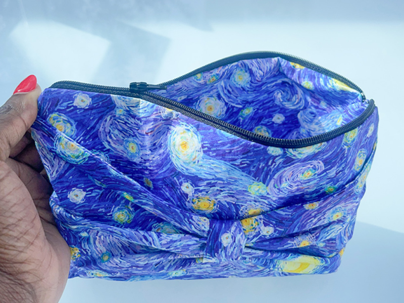 I’m so in love with this bag. It holds a lot and it’s the perfect accessory to go with a handmade dress. In the future, I’d add loops to add on a chain so the bag can be hung on my shoulder.