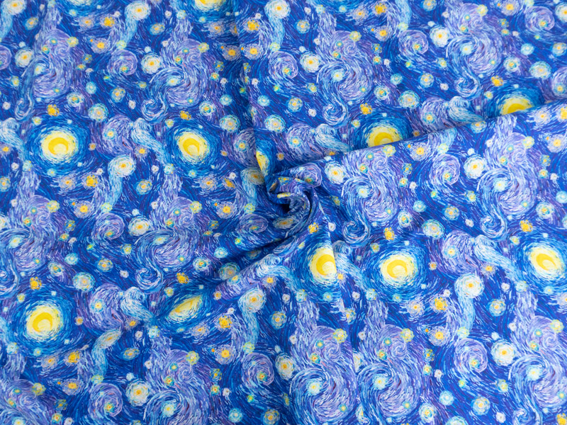 This month’s fabric was love at first sight. I absolutely love the mix of colours on the fabric. The colours and patterns on the fabric is reminiscent of a painting by Van Gogh. Can you imagine that! The painting depicted the view just before sunrise.