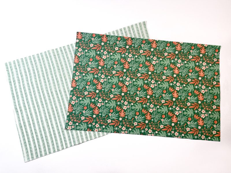 - Cut one outer piece and one lining piece using the measurements taken in step 1, so I am cutting two rectangles 13” tall by 18 ⅝” wide.