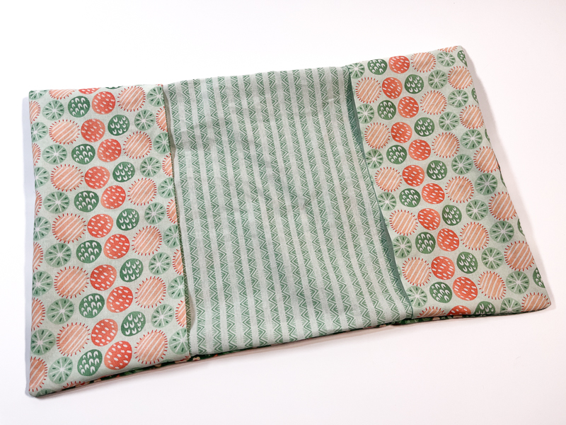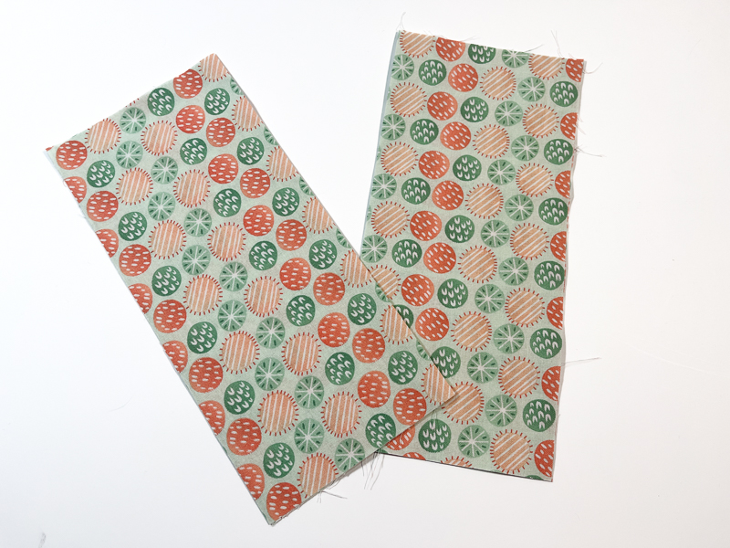 - Press your pocket pieces in half, widthways, wrong sides together.