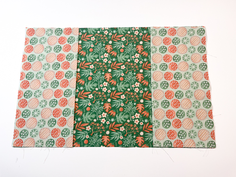 - Place your pocket pieces on top, one at the left and one at the right, raw edges matching.