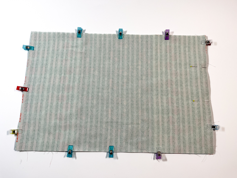 - Place your lining piece on top, wrong side facing up. Now clip around the outside.