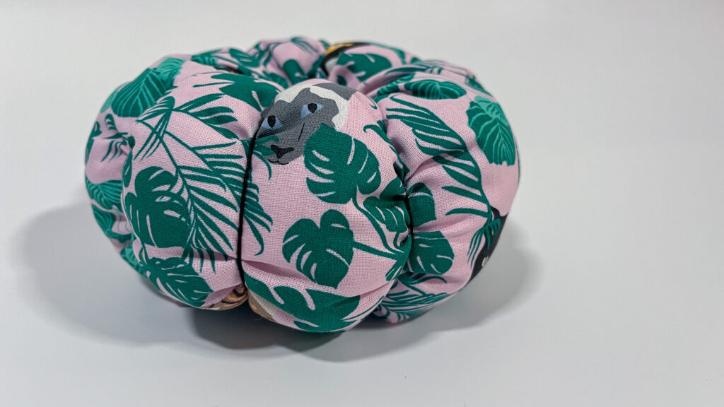 - Repeat steps 3 and 4 to gather the top of the pumpkin, then tie the threads in a double knot and trim the ends off.