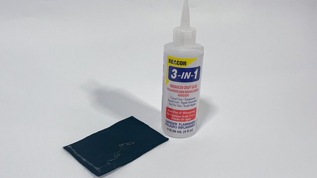 - Cut a rectangle of felt, approx. 2.5” tall x 4” long. Apply some craft glue to one of the short edges.