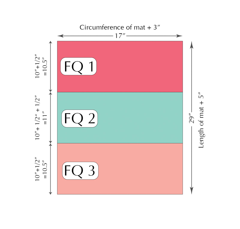 I’m using three fat quarters to create my rectangle, so first I’ll divide my length (29”) by three = 9.6” I’m going to round this up to 10” to make it easier!