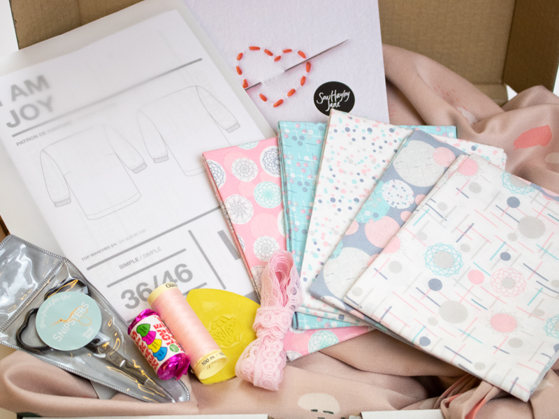 So this months box is full of gorgeous, girly fabrics. I kept in mind the kind of garments that you might make for a brunch date when I was choosing the goodies to go in these boxes and I think I nailed it – even if I do say so myself.