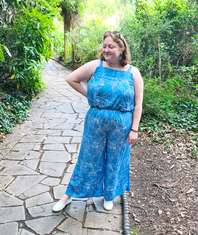 In terms of differences between the two patterns there are quite a few: the top has a higher neckline which I really like, and the strap placement is perfect for me (as I usually have to move the Safiya ones in.) The trousers have a higher waistline which I prefer, however even though I added the patch pockets on the back, I have to admit I do personally find it annoying not having pockets on the front of the trousers, we all know how much I love a pocket! Although with such a drapey fabric it might be for the best, they would weigh it down… oh the conundrum!