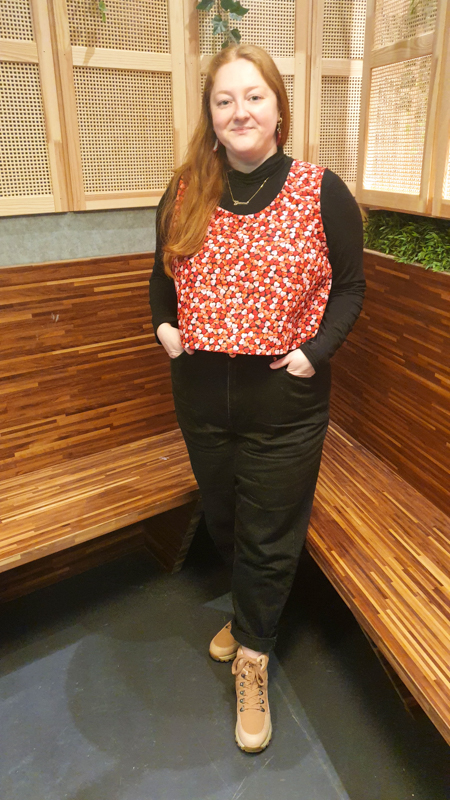 I love how simple yet statement this top is. Such a satisfyingly quick make, and perfect for smaller amounts of fabric! Because of the different pieces to the construction, it would be great for using up different fabrics to create a mix and match look, oh the possibilities! I’ve paired it over a thermal top whilst it’s so cold at the moment, but it will get plenty of wear when it warms up too. Now I’m ready for Valentines!