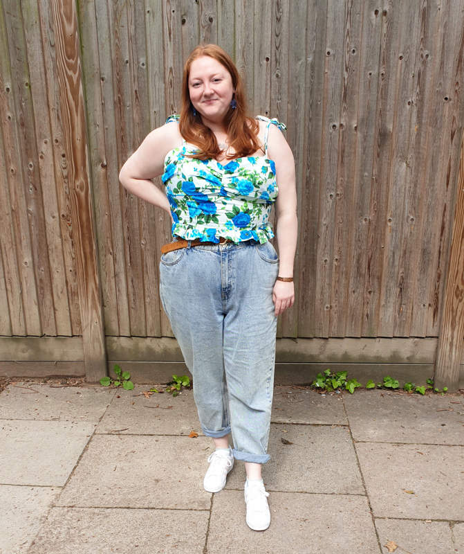 I’m also not convinced on the length for me. It looks longer on the sample, and although I love a cropped top it feels like the ruffle hits just a bit too high and perhaps it would have been better to lengthen the bodice slightly? However, styled in my usual tucked-into-jeans fashion or with high waisted trousers I absolutely love it!