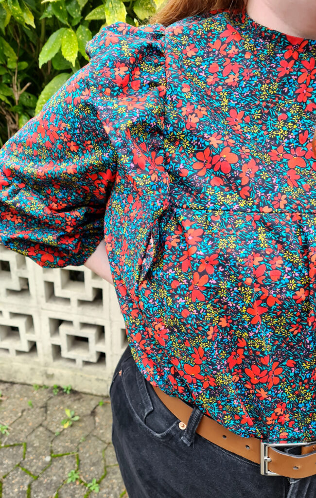 Ideally given the meterage I would usually think of a dress, or perhaps a jumpsuit, but given the time of year I wanted to make something practical that I could wear now, and knew the perfect pattern to show off that wonderful print – the Tilly and the Buttons Marnie blouse!