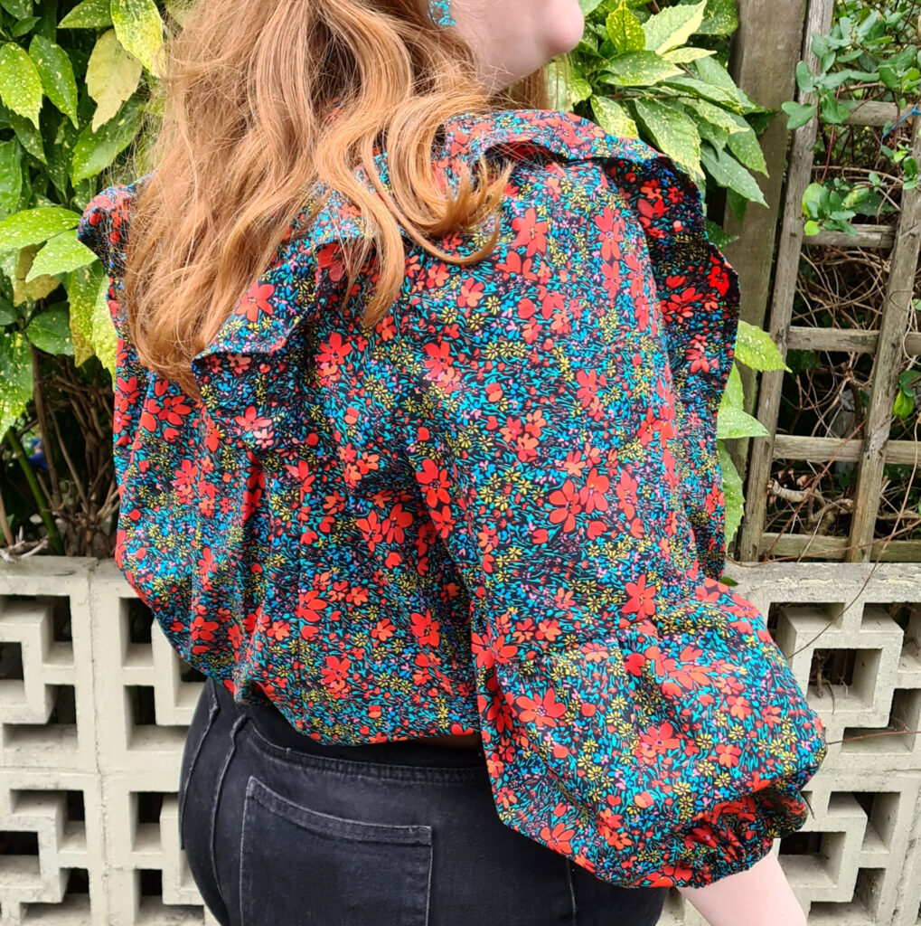 In case you haven’t come across this pattern yet, the Marnie is a floaty smock style blouse that can be truly customised – think shoulder and/or collar ruffles, pin tucks on the bodice and/or sleeves, panelled body and bishop sleeves – there’s a lot going on! You can go as full on or plain as you prefer, for this one I decided to add the shoulder ruffles to keep with the romantic theme of the design, and omitted the pintucks so as not to disrupt that gorgeous print.