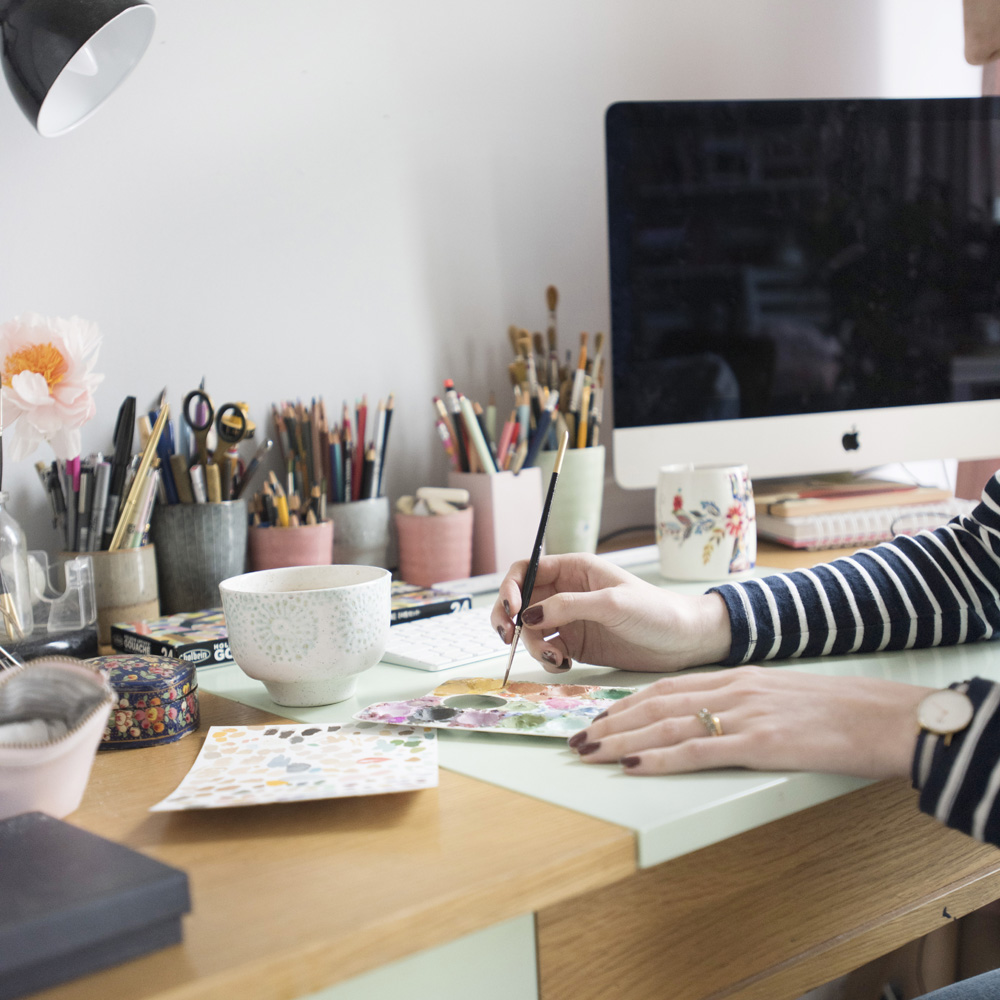 Every day varies for me. I’m not much of a morning person so I usually get up quite late, then do a few hours of emails, admin and social media, and sometimes a gym class before lunch. After lunch I focus on more creative work, sketching, painting or editing my work on photoshop. I love to listen to podcasts when I’m painting or sketching. I work from home, but I’m strict about always finishing work at 6pm, unless I’m teaching a workshop.