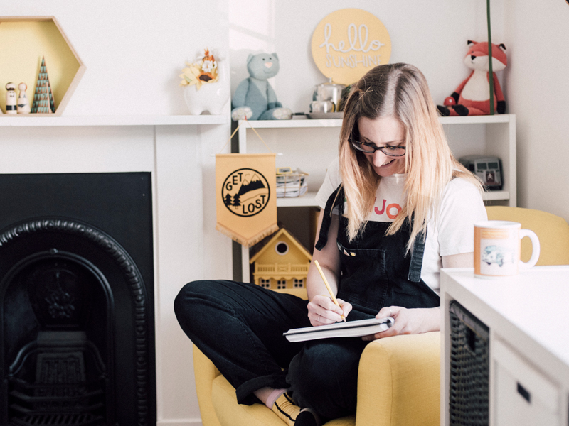 I LOVE being in my happy place (my studio) and working from home, it’s a big bright room full of all of my favourite things and with the kitchen just downstairs a brew is never far away. Being my own boss and planning my time around what I need (and want) to do every day/week is a real bonus – I am lucky enough to live near the river in Cambridge too so lunch breaks on sunny days or a cheeky morning paddle on my SUP (stand up paddleboard) are a real treat and if I ever fancy something naughty for lunch I’m only a short bike ride away from town.