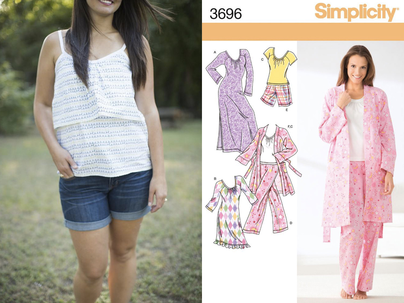 The Waterfall Tank from Sew Caroline is a gorgeous breezy summer top with the layered detail giving it a bit of extra interest. If you’re in need of a cute pair of pyjama shorts for the summer this Simplicity 3696 would be perfect with a cute matching top in a knit fabric.