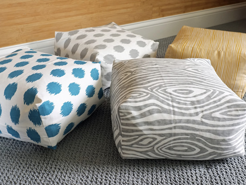 To make some comfy outdoor seating for the little ones at a family picnic follow this tutorial for turning a standard envelope cushion into a boxy floor cushion. There is a link to find out how to make the envelope cushion first if your not sure.