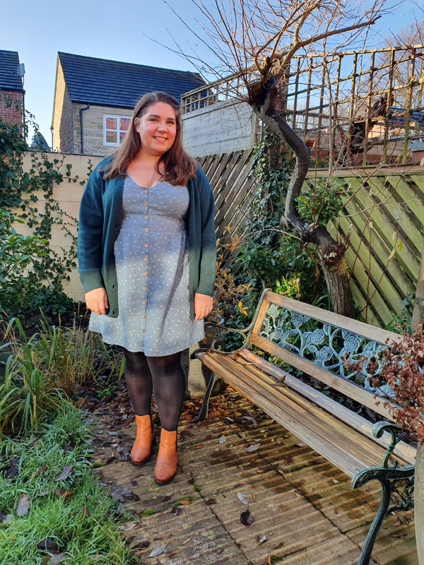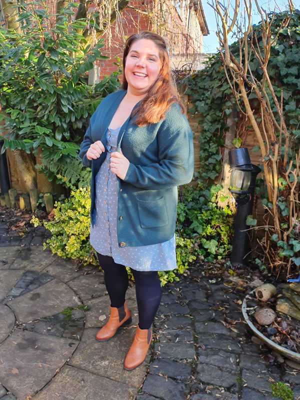 The dress is so perfectly soft and cosy, I love it so much. I can easily see me wearing this all year round as the fabric and dress pairing is so versatile. For winter I have teamed with thick tights and a big woolly cardigan for extra snug – bring on the mince pies and mulled wine!