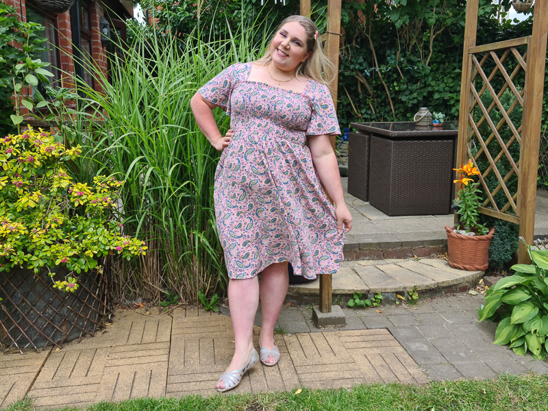The style of this dress suits a floaty, lightweight fabric so the viscose this month absolutely meets the bill. I really like the combination of pink and green and I love paisley print to boot.