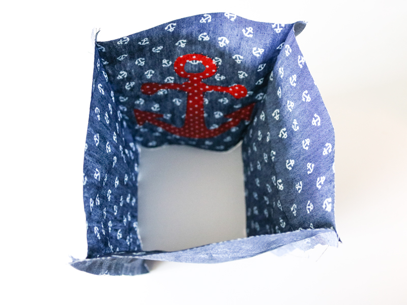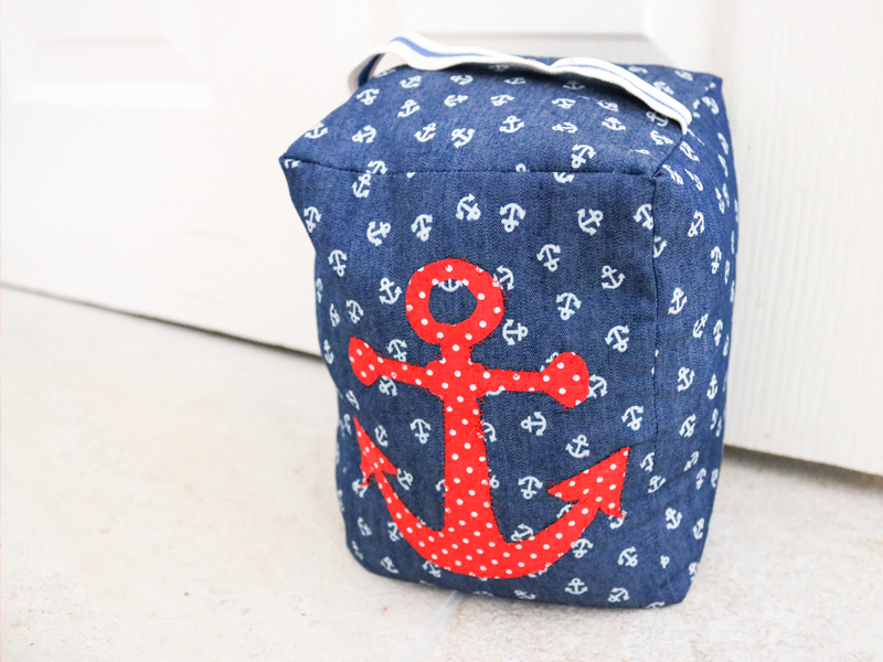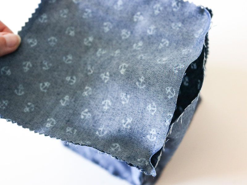 Not to be put off, I had a few off cuts of the chambray anchor print fabric left over so I cut a piece to the size of a fat quarter and set out to make myself a cube door stop. I thought I’d share with you the process in case you fancy making yourself one.