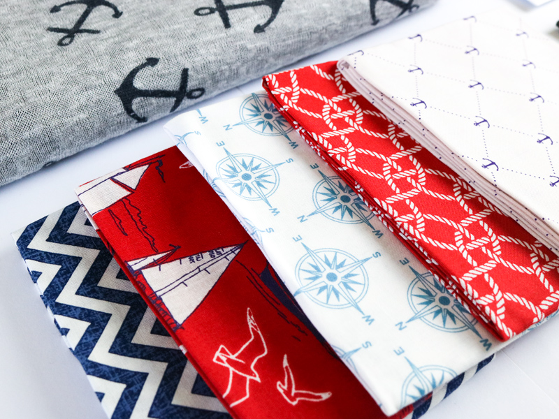 I love the fat quarters, with fabulous nautical prints of rope, compasses and chevrons. These will make some fabulous summer accessories for any garden or beach parties you might be planning, from tote bags, to scatter cushions and bunting.