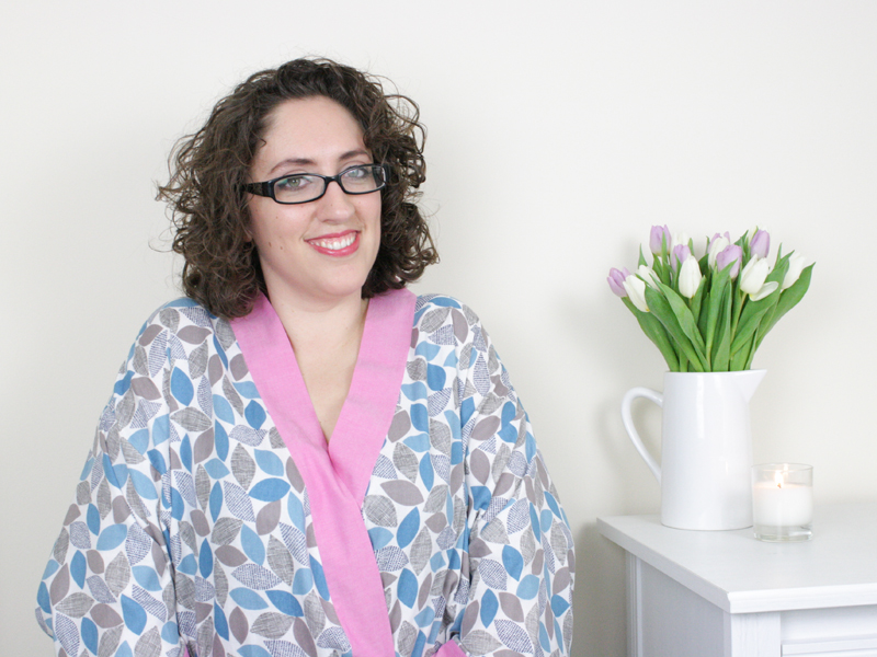 As it’s a loose fitting garment the pattern comes in three sizes, I cut out the large which fits sizes 16-18 and it’s spot on. It wraps around nicely leaving no inappropriate gaping at the bottom!