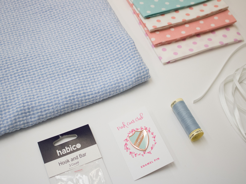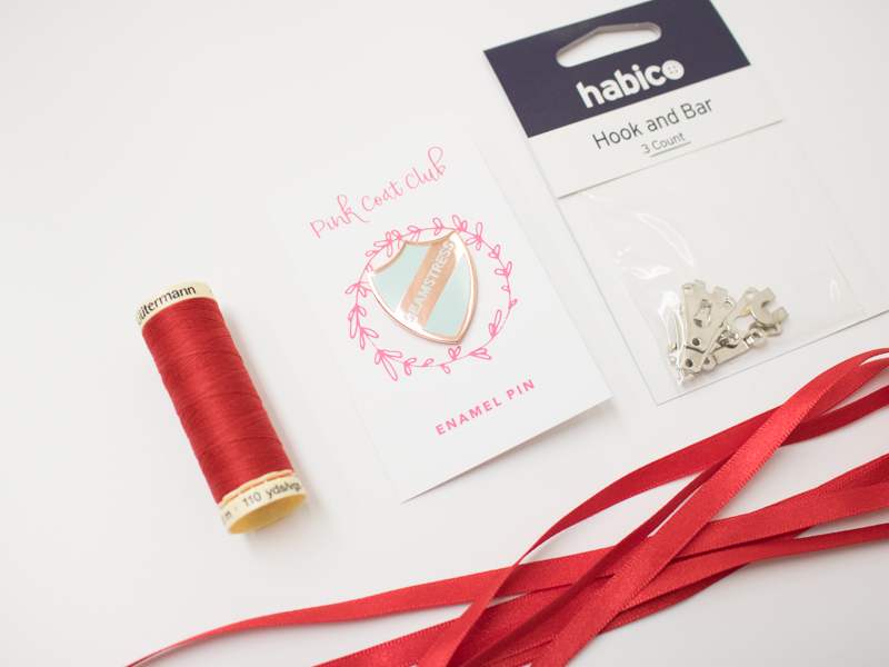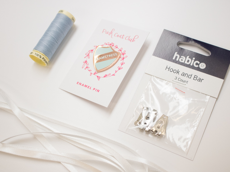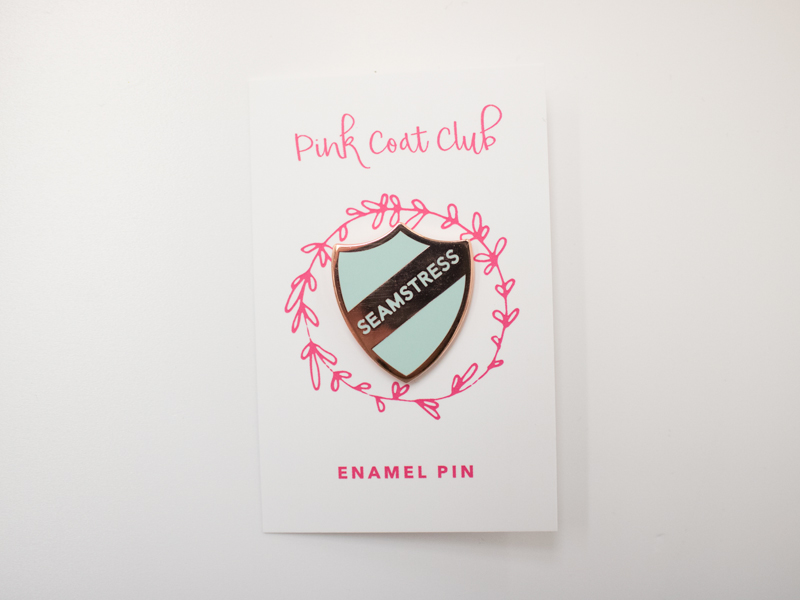 The inspiration for this months theme came from the beautiful “Seamstress” pins from Pink Coat Club. I contacted Joy a few months back after seeing the pins cropping up on my Instagram feed and she asked if I’d like to work together to create an exclusive colourway of the pins just for you SewHayleyJane subscribers! Well of course I said YES!! So we used one of my brand colours for the background along with rose gold for the detail – I hope you agree that it works beautifully.
