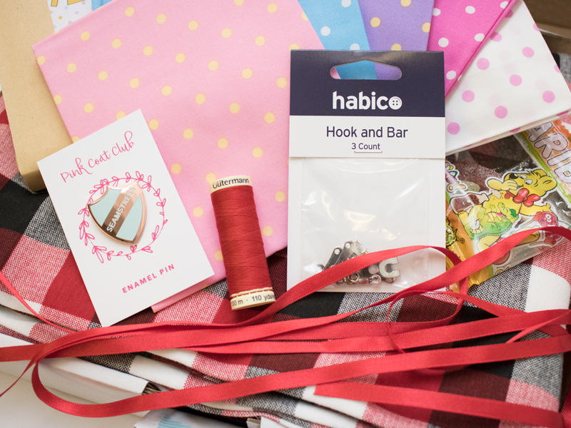 As well as all that gorgeousness, every box also includes 2 meters of ribbon, a reel of Gutermann thread to match your main fabric and either a set of hook and bars (to add to waistbands of skirts or trousers) or a set of snaps.
