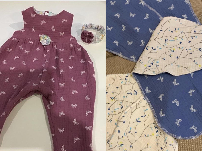 Double gauze is also particularly lovely for turning into children’s items, as shown here by Nora @the_sewistess who made this adorable Madrid romper by Ikatee Couture. Make the most of your beautiful fat quarters by using them to make teeny tiny facings.