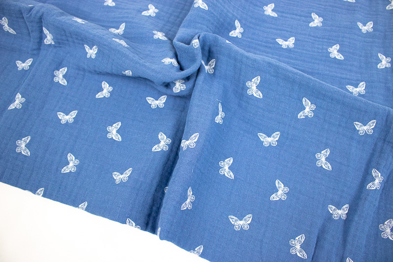 Double gauze is made of two layers of a fairly open weave cotton gauze that is then held together with small stitches at regular intervals giving it a cushiony, airy property.