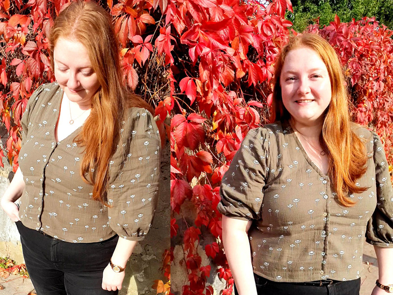 Casting our minds way back to October 2020’s “Autumn Hues” box Gemma used her skills at playing pattern Tetris to make a Fibre Mood Norma Blouse the only adjustment needed was to shorten the bodice and sleeves by a centimetre or two but when tucked into high waisted jeans or a skirt you’d never know!