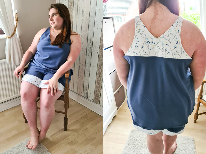 Lets start with our lovely Laura who used the white floral double gauze from June’s Escape to the Country box and combined it with a plain blue twill crepe to make the Megan Nielsen Reef Set. The other option here would be to make either the shorts or the cami top out of the double gauze and choose a contrasting fabric to make the other half.