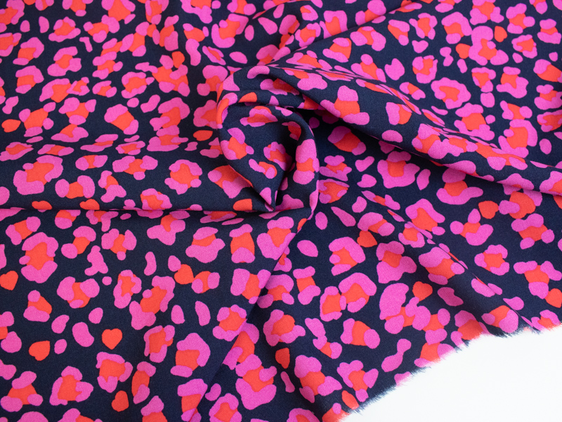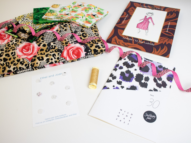 This fabric is so vibrant, the colours are just gorgeous. The Classic and Mini boxes this month include a leopard print viscose in either blue and grey or navy blue and pink. I love them both, I can’t decide which is my favourite but there was some pink leftover after we packed up the boxes so I took it straight home to put in the wash.