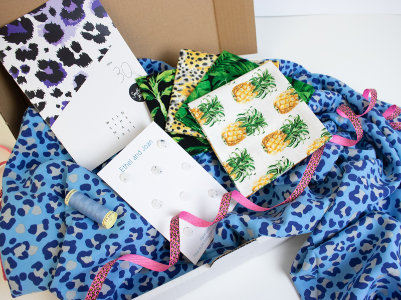 Another month where these boxes are actually bursting at the seam. It took a lot of muscle for the team to wrestle the fabric and all the goodies into the boxes but we got there in the end. The reason for the bulk is the beautiful Lady McElroy Leopard Rose viscose jersey which has a stunning print feature leopard print, roses and houndstooth. This fabric has a lot of stretch and drape to it and will be so cool to wear over the coming warmer months.