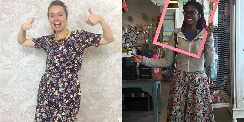 Let’s start at the very beginning. These two gorgeous garments were made from fabric that was sent out over a year ago now. Hayley made a gorgeous Tilly and the Buttons Bettine dress using fabric from the very first ever SewHayleyJane box. Martha made this incredible cardigan by hacking the Colette Moneta bodice, officially blown away!