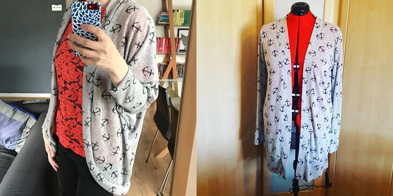 The Girl Charlee Hacci knit from the “Sail Away” box turned out to be a great fabric for those of you who entered the #cosycardichallenge back in October. Amy made a Carrie Cardigan from Delia Creates whilst Vickie made a Blackwood Cardigan from Helen’s Closet, a pattern that was very popular indeed for this challenge!