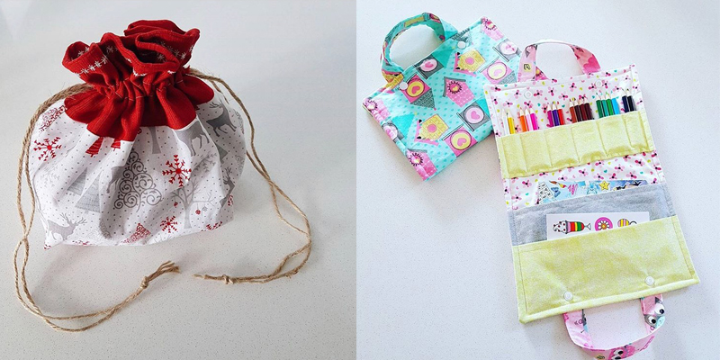 Vickie used some of her “Festive Fever” fat quarters to make some little project bags for her Christmas knitting, she even made use of the twine that the boxes are wrapped in, love a bit of upcycling! Finally, from her September “Back To School” box, Vickie used the fat quarters to make these sweet little art folios to give as gifts for her kids friends, what a great idea! You can get the pattern from Ginger Cake.